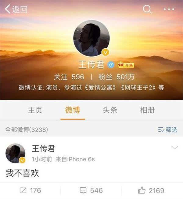 也有圈内人直言不喜欢王家卫的电影,比如出演过《爱情公寓》的王传君,他的我不喜欢几个字被解读成对王家卫的新电影无好感。